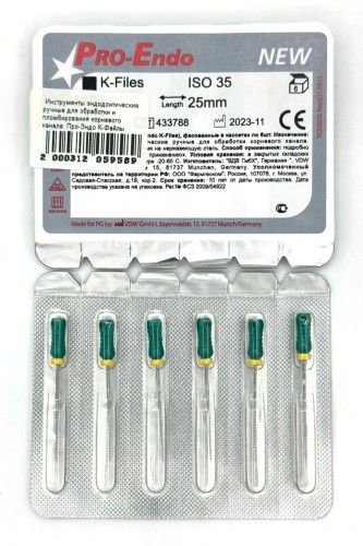 К-файл № 35 Pro-Endo – ручной эндодонтический инструмент, применяемый для чистки и расширения зубных каналов. Это позволяет эффективно препарировать их для дальнейшей обработки.